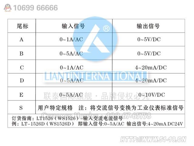 ●输入信号:0~1A/AC、0~5A/AC等(其他规格输入价格另议)
