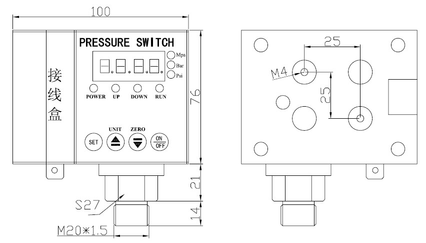 接口尺寸                             接口螺纹M20*1.5  G1/4 (可定制接口)