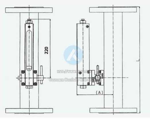 KF600系列一体型化孔板流量计是一种分流式流量计,浮子流量计安装在测量管边上并与分流孔板组合为一体。有四种不同的连接方式供用户选用,即有“螺纹”(AT)、“法兰”(AF)、和“对夹”(AC),分离型(AD)。流体流经主孔板时,在孔板的前后两侧产生差压,此差压值与流量值相当,以浮子流量计安装在分流进出口之中,使通过浮子流量计的流量相当于通过主管道之流量,于是通过主管道流体的流量大小,可由玻璃浮子流量计的刻度完成指示。