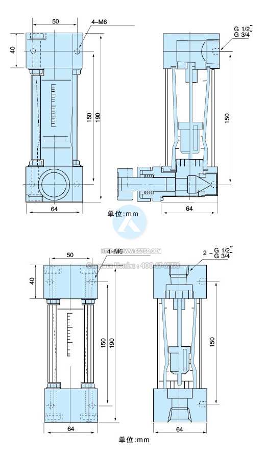 该系列玻璃转子流量计外形精巧美观,结构拆装方便,液体接触部分为304SS,外壳使用铝合金,适用范围广,主要应用于分析仪器、测试设备及科研等部门。