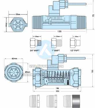 Z-6000/6200系列流量计是一种变面积仪器,在浮动活塞内有一个锥形的量体,与本体构成一个锥形口。流体通过流量计时,在锐边量孔两端形成压差,使浮子向压缩弹簧方向运动。浮子的位移量与流量(流速)精确地成正比。流量计可用于任意方位,甚至倒置。观察浮塞上的红色指示器环,就可以指示所测定的流量。使流量计可安装于任何位置而不影响精度,它可以装在水平或垂直管路上,流量计用于监测各种液体与气体。