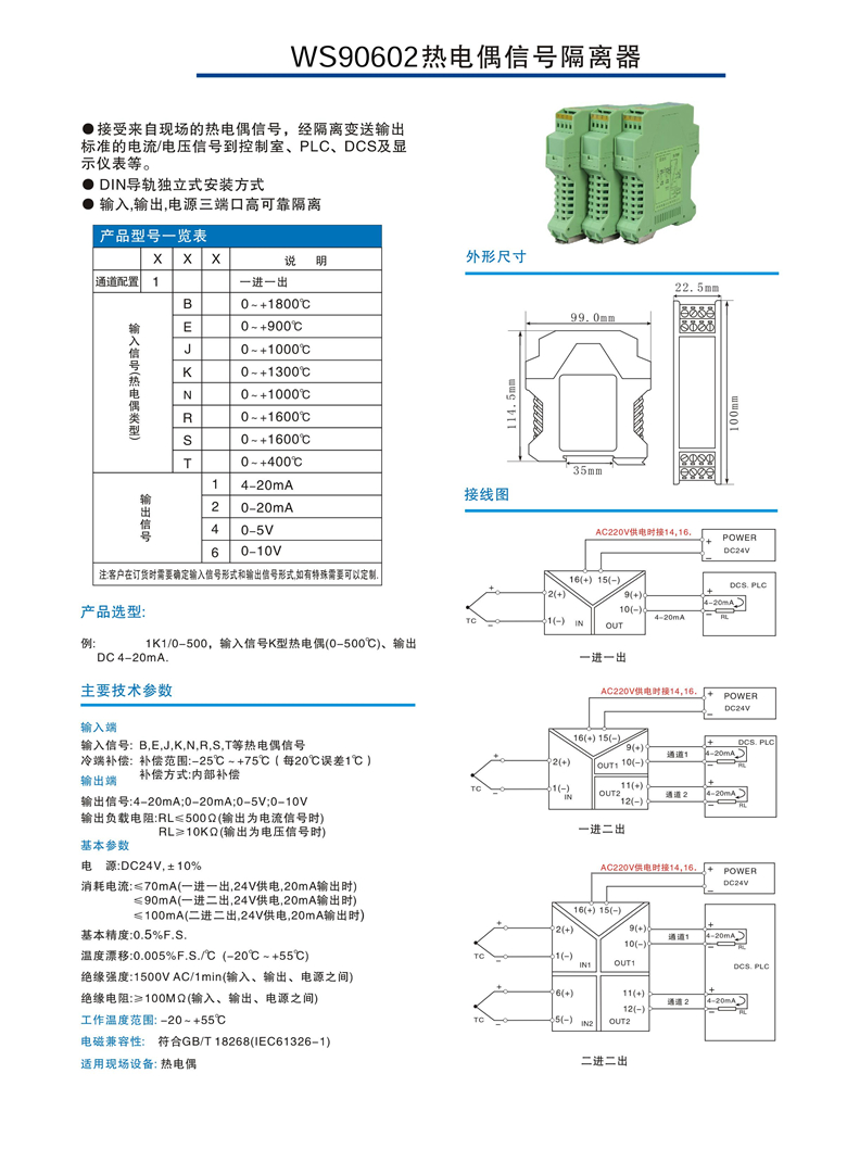 首页> 全部产品 > 变送器> 隔离变送器> WS90602热电偶隔离变送器