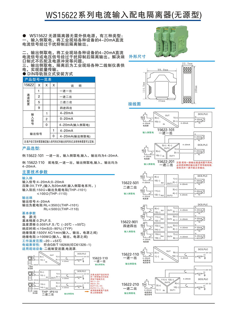 首页> 全部产品 > 变送器> 电流变送器> WS15622电流输入配电隔离器