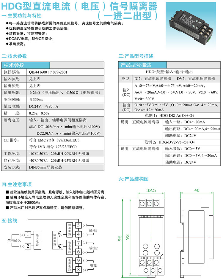 首页> 全部产品 > 变送器> 隔离变送器> HDG型直流电流(电压)信号隔离器(一进二出型)