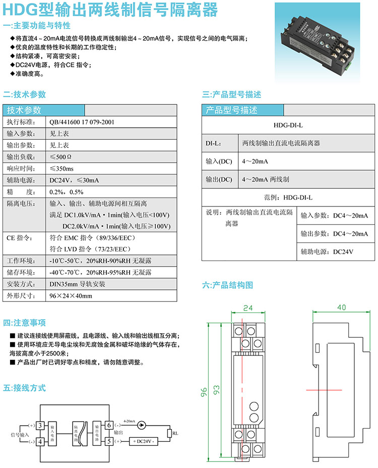 HDG型输出两线制信号隔离器
