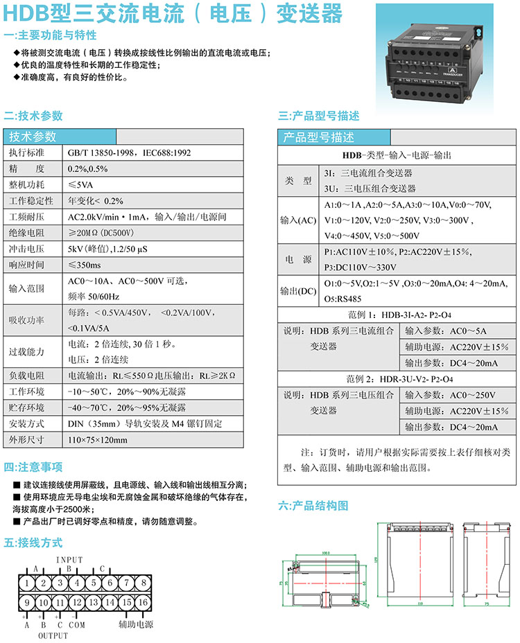 首页> 全部产品 > 变送器> 电流变送器> HDB型三交流电流(电压)变送器