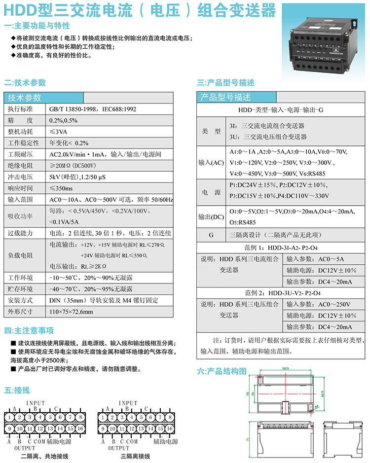 首页> 全部产品 > 变送器> 电流变送器> HDD型三交流电流(电压)组合变送器