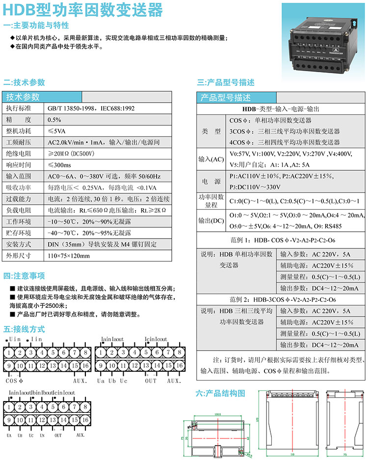 HDB型功率因数变送器