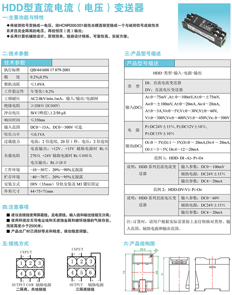 HDD型直流电流(电压)变送器