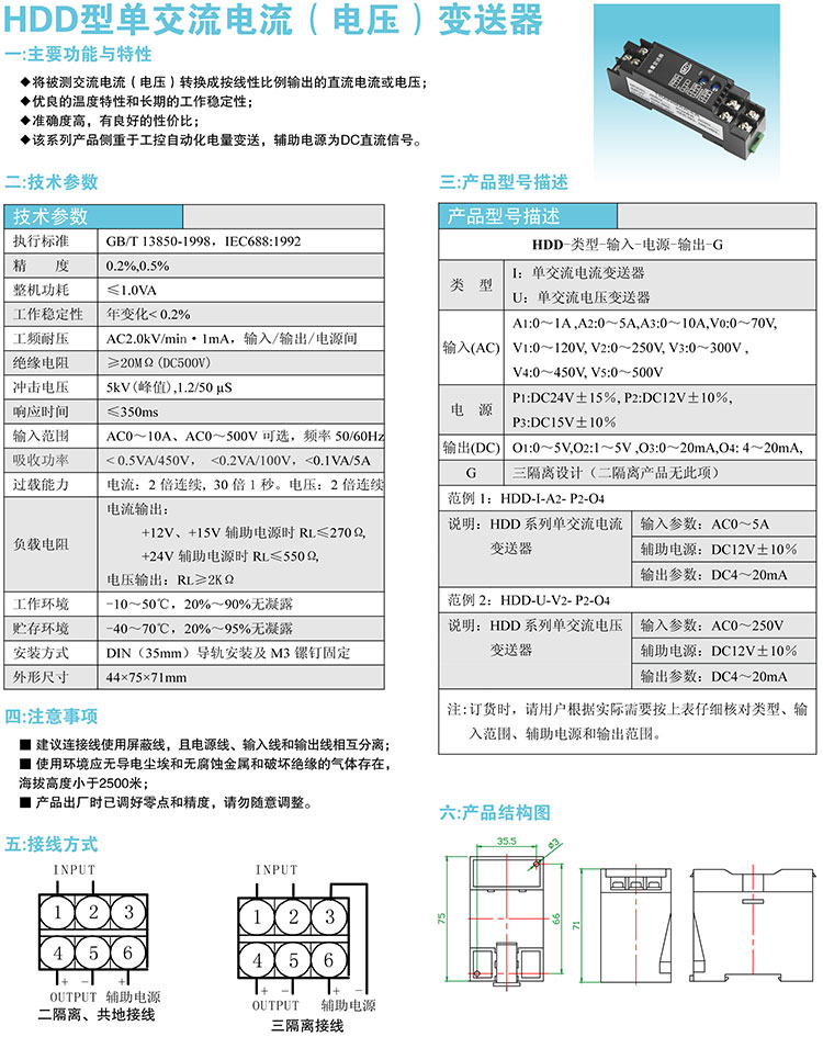 HDD型单交流电流(电压)变送器