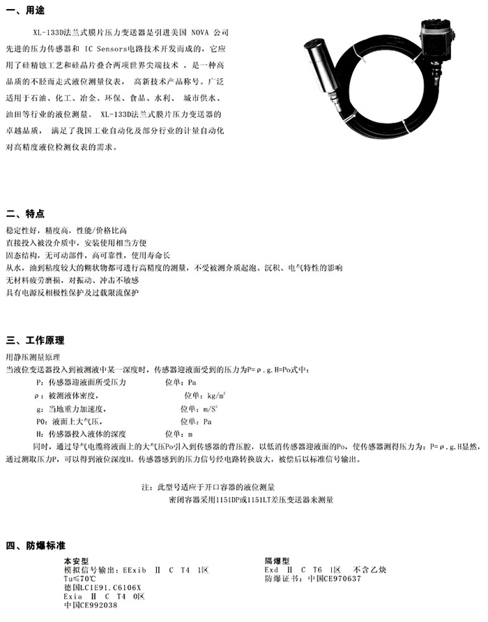 首页> 全部产品 > 变送器> 压力变送器> XL-133D法兰式膜片压力变送器