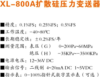 首页> 全部产品 > 变送器> 压力变送器> XL-800A扩散硅压力变送器