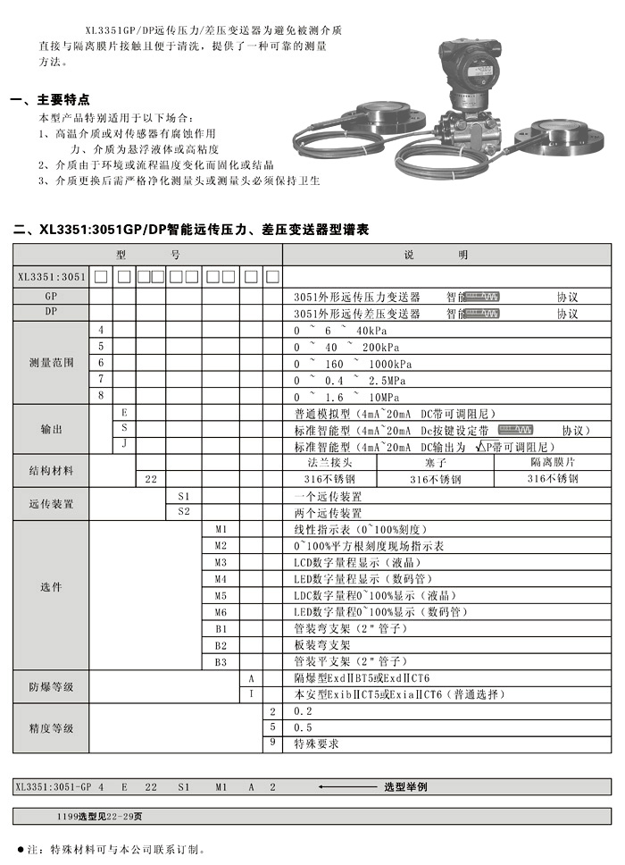 XL3351:3051:GP/DP智能远传压力/差压变送器