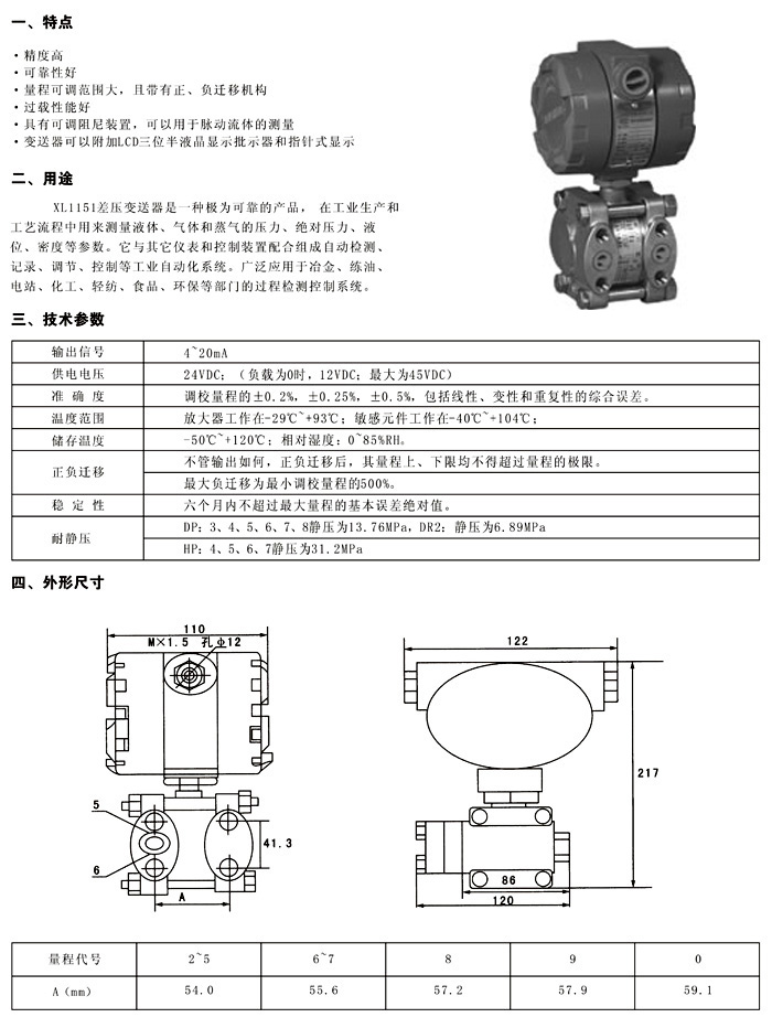 首页> 全部产品 > 变送器> 压差变送器> XL1151微差压/差压变送器