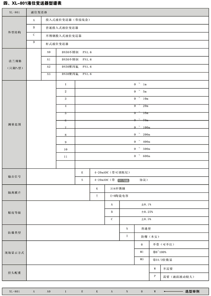 首页> 全部产品 > 变送器> 液位变送器> XL-801A投入式液位变送器(带接线盒)