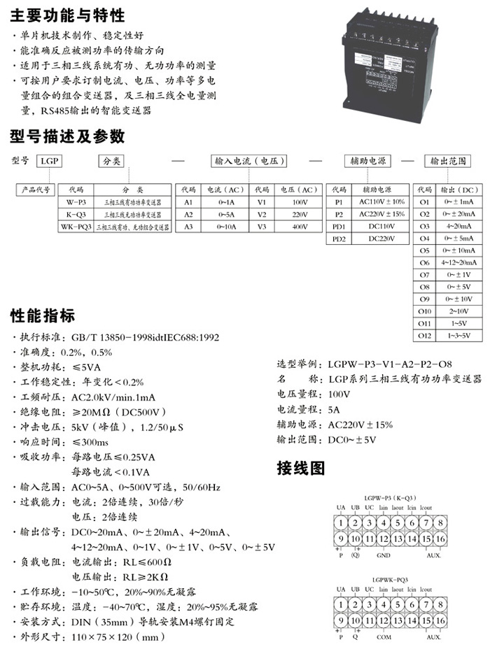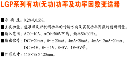 首页> 全部产品 > 变送器> 电流变送器> LGP系列有功(无功)功率及功率因数变送器