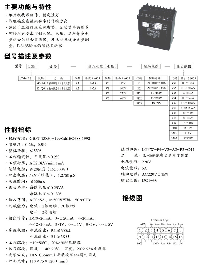 LGP系列有功(无功)功率及功率因数变送器