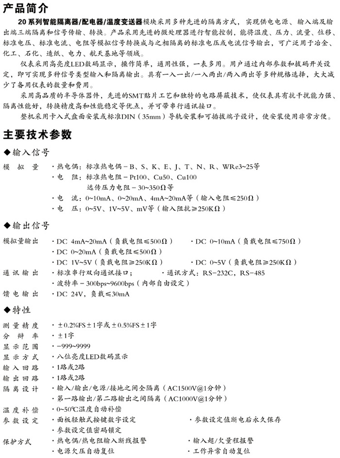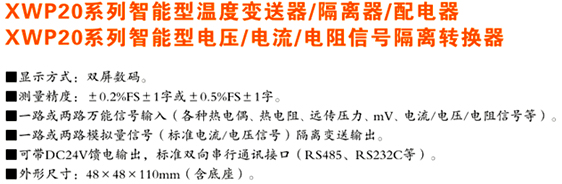 首页> 全部产品 > 变送器> 温度变送器> XWP20系列智能型温度变送器/隔离器/配电器