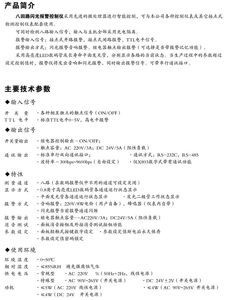 XWP-X803系列八回路闪光报警控制仪