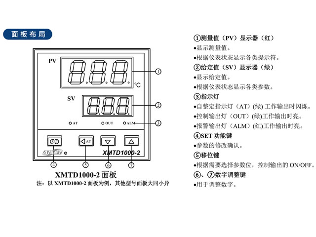 XMT-1000系列智能温控器是本公司引进国外最新技术开发的具有自整定功能的智能式数字式温度控制器。该系列温度控制器以单片机为控制核心,采用SMT贴片工业、开关电源、PID控制、电磁兼容性设计、系统自检等先进的技术。该器表的技术性能与制造工艺先进,是理想的普及型温控器表。