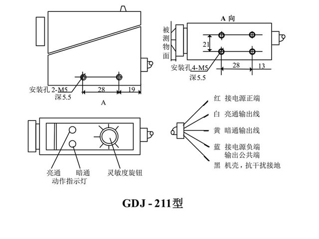 GDJ系列色标传感器(俗称光电头,光电眼)采用光发射接收原理,发出调制光,接收被测物体的反射光,并根据接收信号的强弱来区分不同的颜色,或判别物体的存在与否。在软包装机械、印刷机械、食品机械、纺织及造纸机械的自控系统中作为传感器与其它电路或装置配套使用、对印刷在某种颜色背景上的色标,或其它可作为标记的图案色块、线条,或物体的有无进行检测,可实现自动定位、定长、辨色、纠偏、对版、计数等功能。