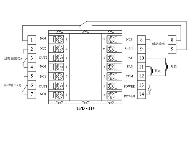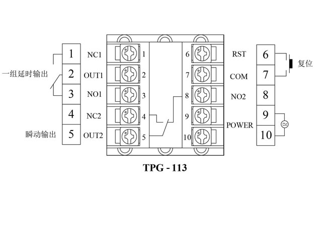 端子复位(RST,COM脚短接):复位信号脉宽≥20ms;NPN型无触点信号(0V≤VL<1V,2.5V≤VH≤5V),或触点信号。
