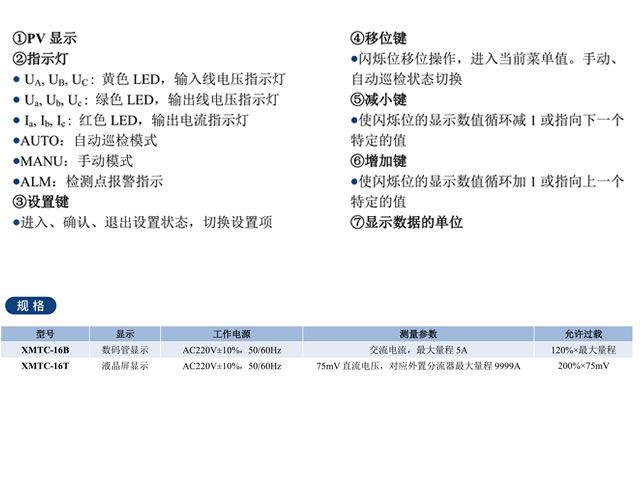 XMTC系列智能高速高精度电压电流巡检仪采用先进的微电脑技术芯片,抗干扰能力强,可配合不同的互感器满足各种测量量程的要求,可对多路电流实现高精度的显示、控制及变送输出、通讯等功能。