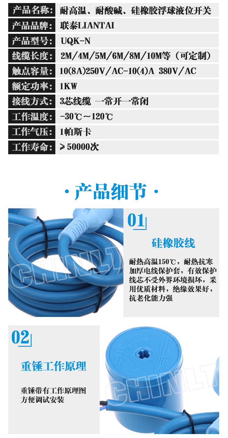 耐高温耐酸碱硅橡胶电缆浮球开关UQK-N