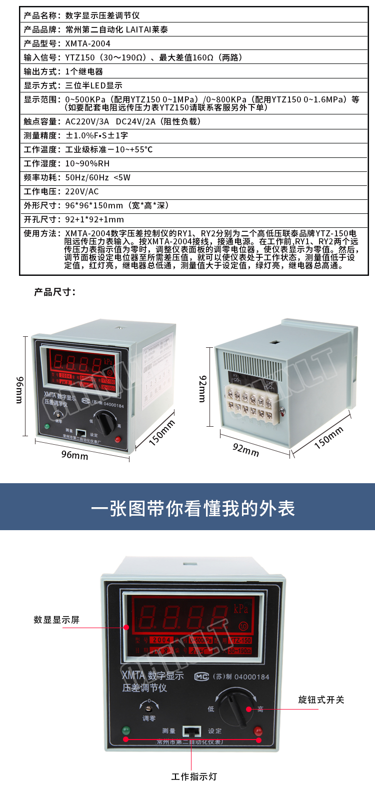 • 商品简介:全量程数码压差显示,旋钮设定。