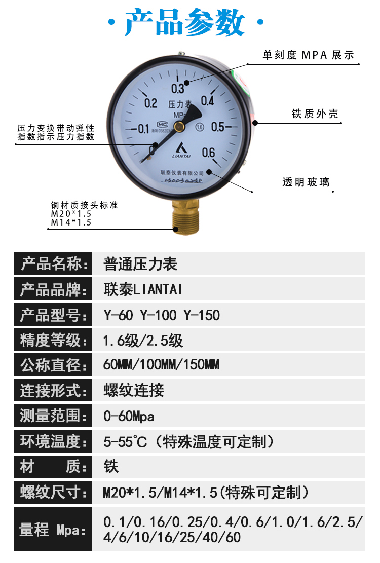 首页> 全部产品 > 压力仪表> 普通压力表> Y60/Y100/Y150普通压力表