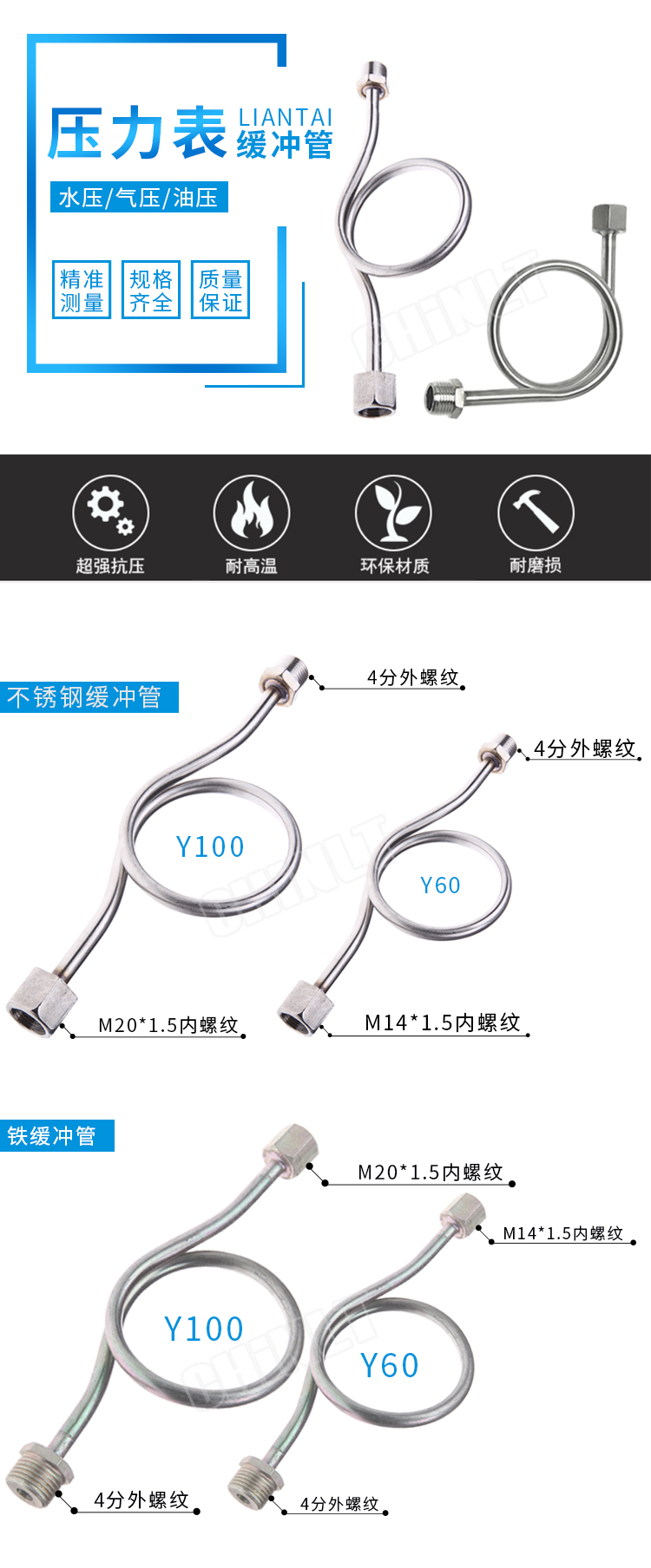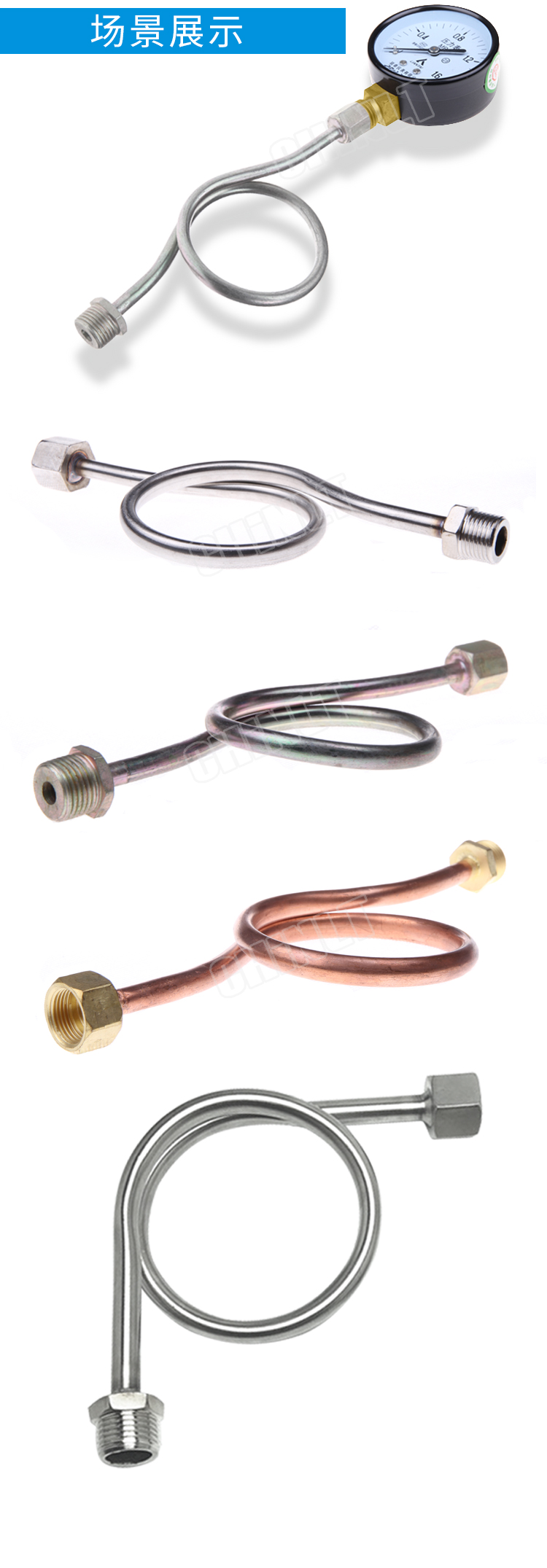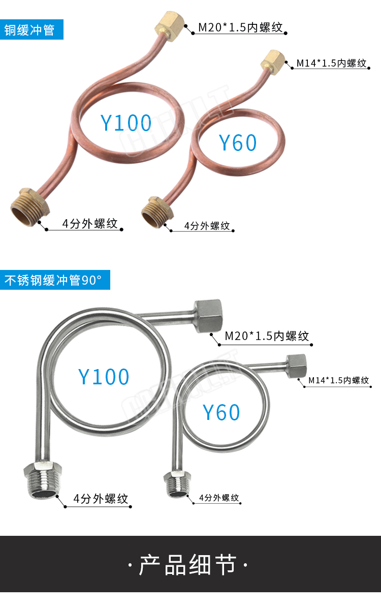 4分压力表铜、铁、不锈钢缓冲管