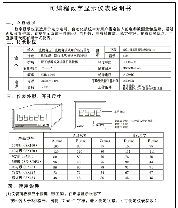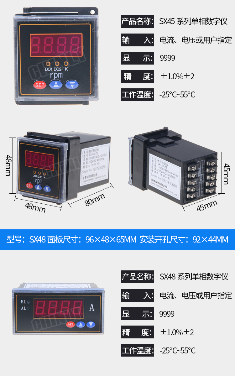SX48J/SX45J可编程数显电力仪表电流电压表
