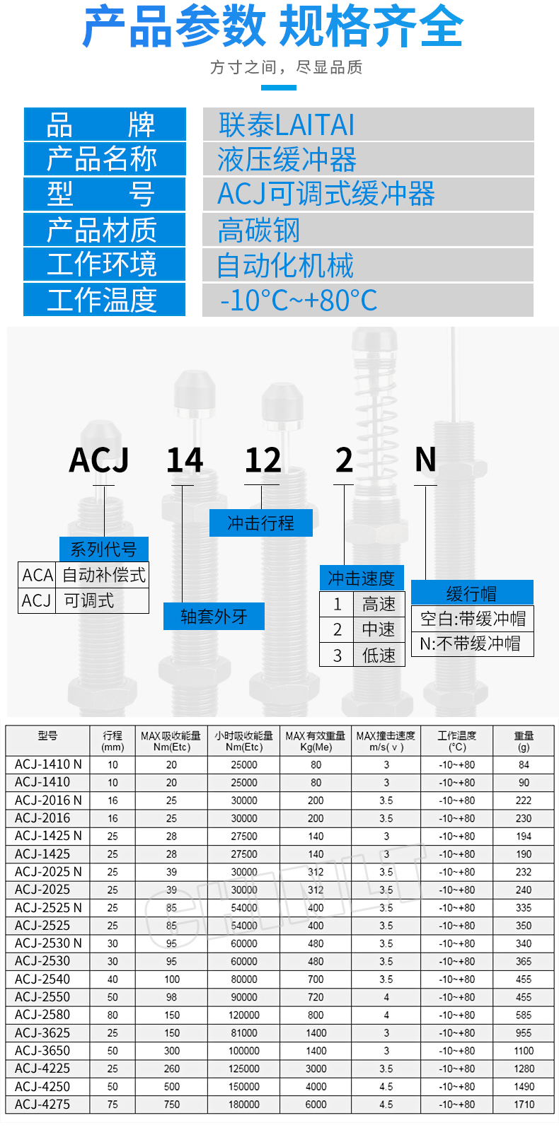 首页> 全部产品 > 气动控制元件/液压元件> 气动元件阀> ACJ-1007/1412/2020可调式油压缓冲器