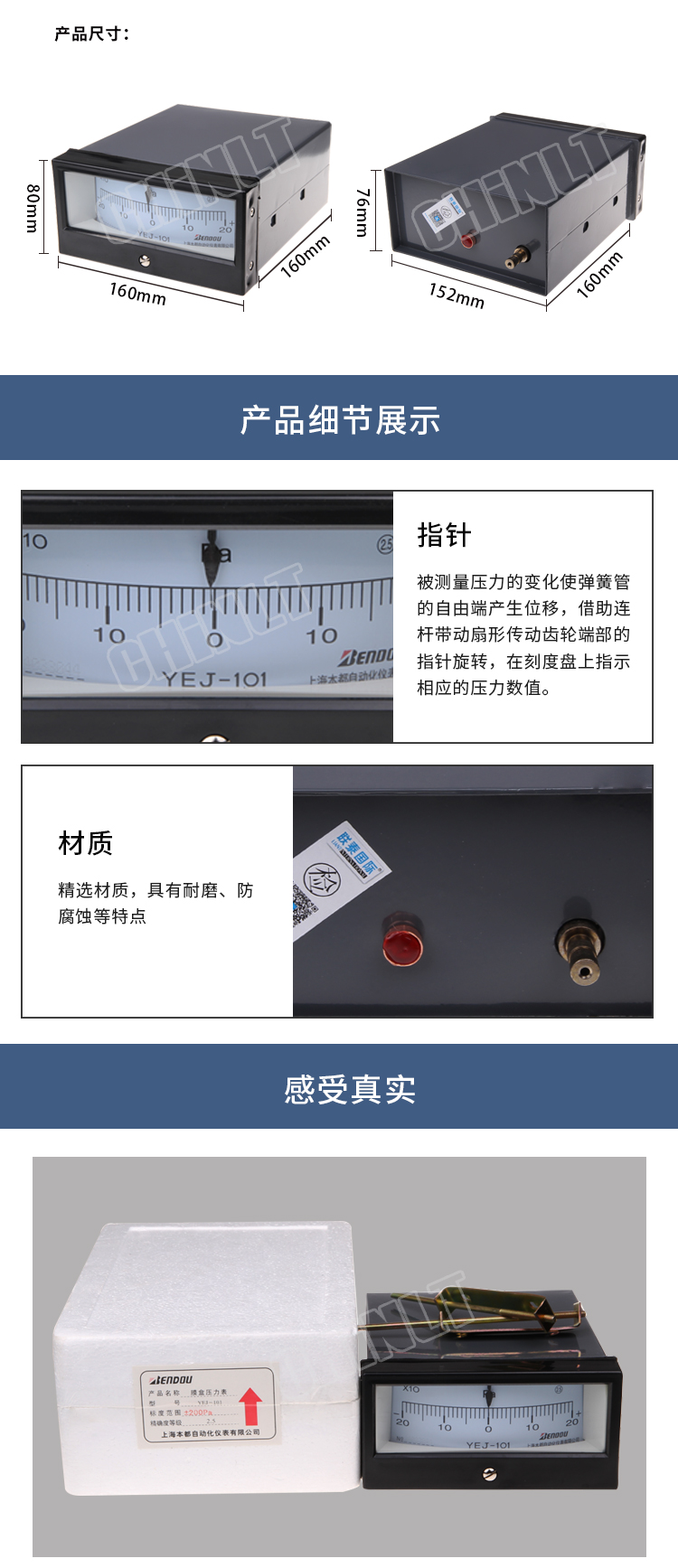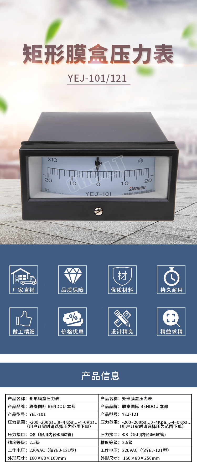 YEJ-101/121 矩形膜盒压力表