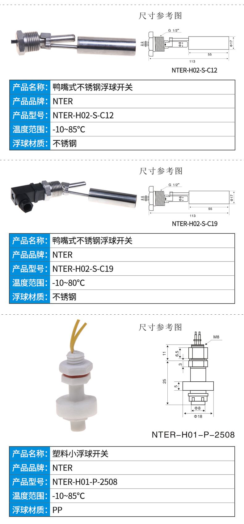 C3/C4/C5/C6/C7 鸭嘴式浮球开关