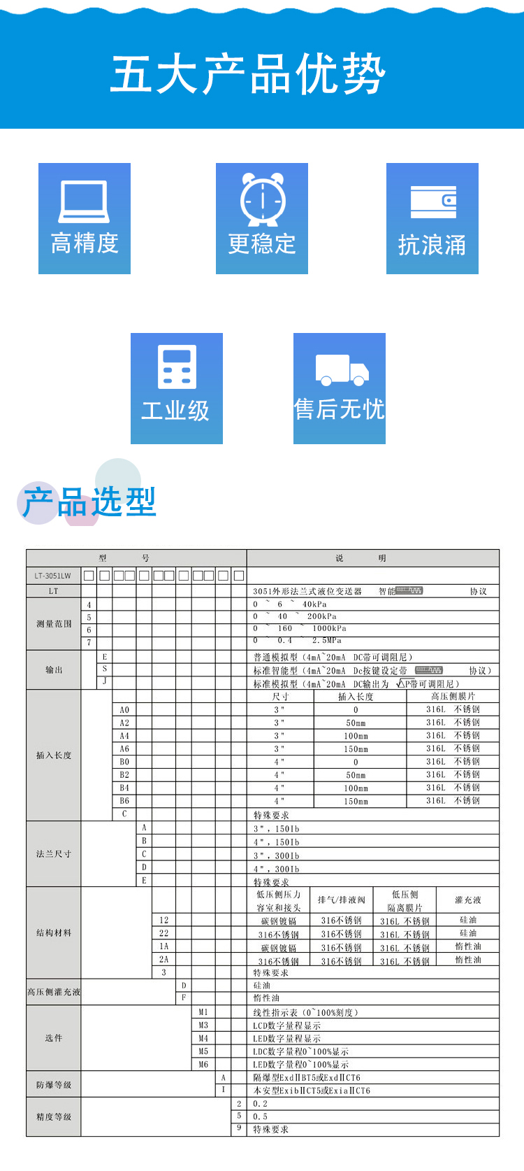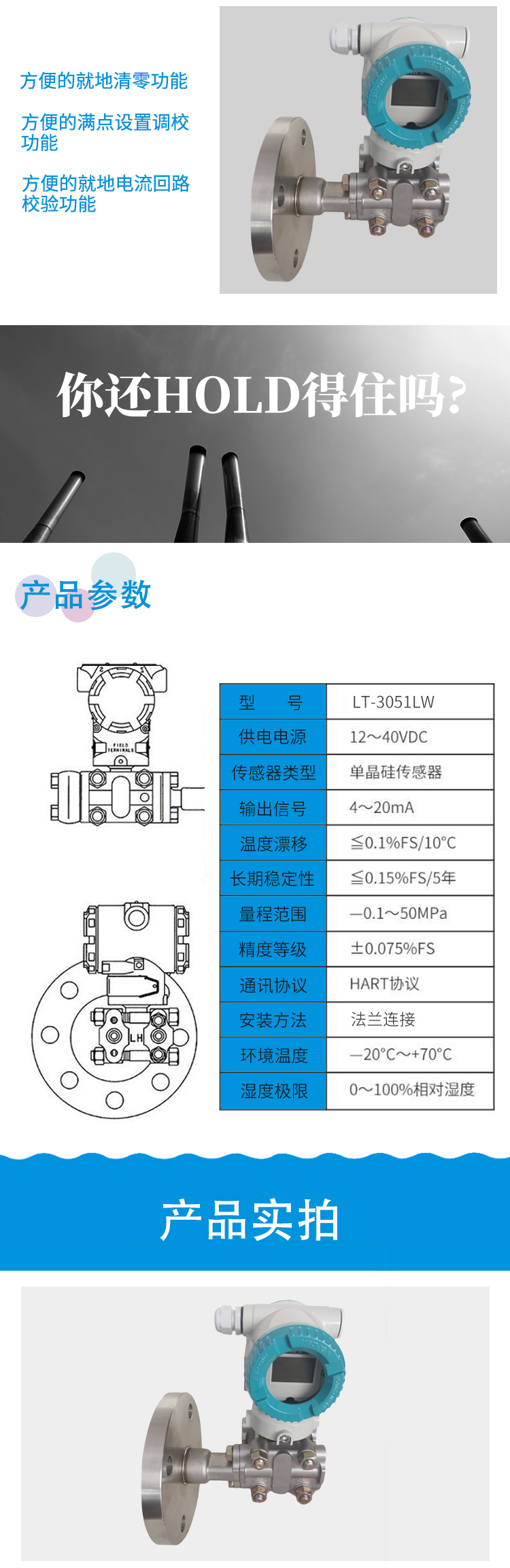 首页> 全部产品 > 变送器> 压差变送器> LT-3051LW单法兰智能液位变送器